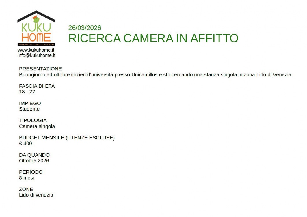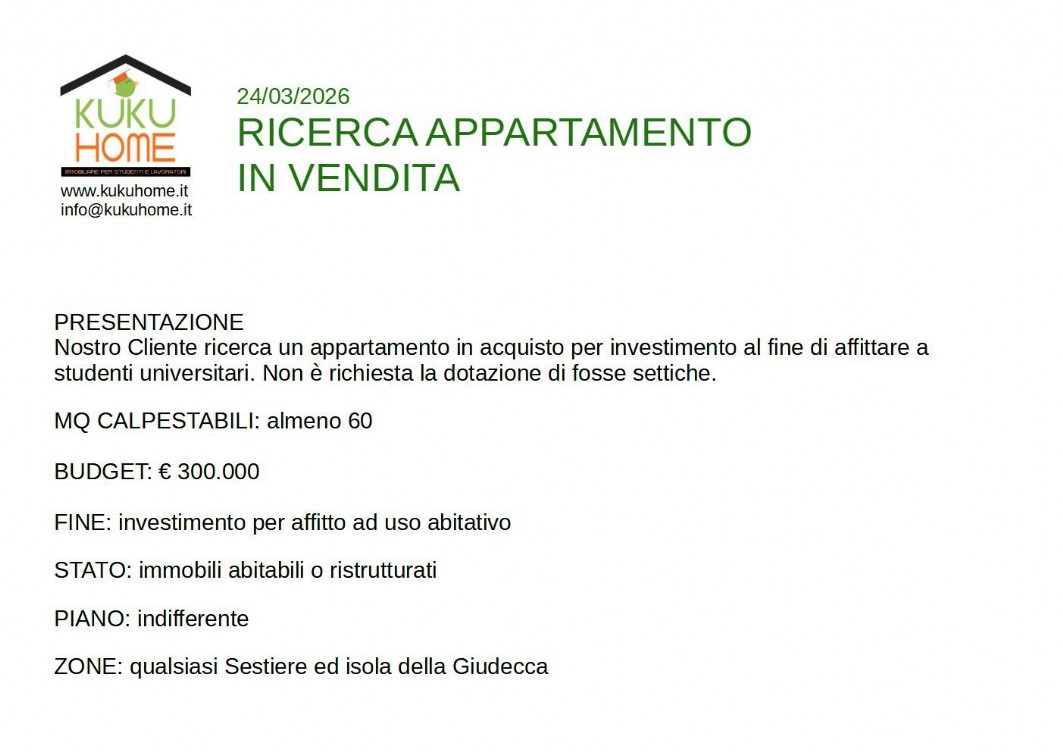 L'Agenzia kukuhome opera nel comune di Venezia Centro Storico, isole e terraferma.